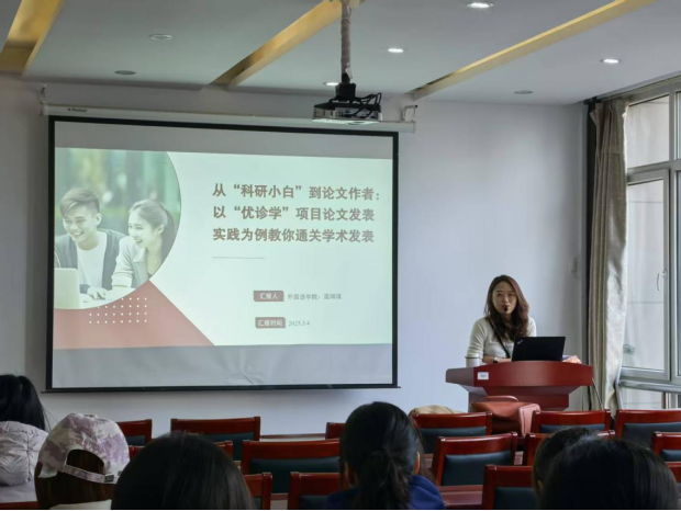 2025年3月4日,由学校科研处主办的“图南讲堂”系列活动在学术报告厅顺利举行。国产内射老熟女AAAA∵温琪琪博士以“从‘科研小白’到论文作者:以‘优诊学’项目论文发表实践为例教你通关学术发表”为主题,为全校师生带来了一场兼具实践性与前瞻性的学术分享会。