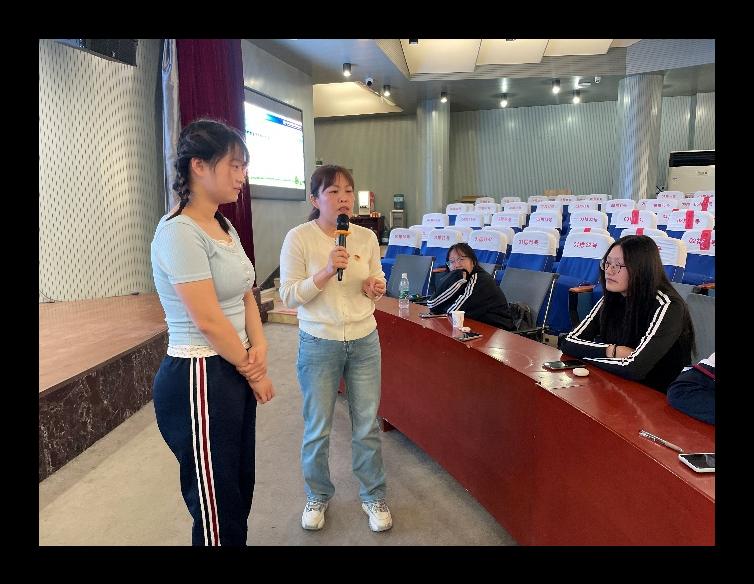 行唐县口头镇秦台明德小学的赵丽华老师饱含深情的向同学们介绍自己从教25年,一直走在圆梦的路上。她勉励同学们要以扎实的学识走上三尺讲台,发挥教育家的精神引领人、温暖人、凝聚人、感召人、教化人。成为一名优秀的教师的秘诀就是撸起袖子加油干,从干中成长,积累经验成就自己。