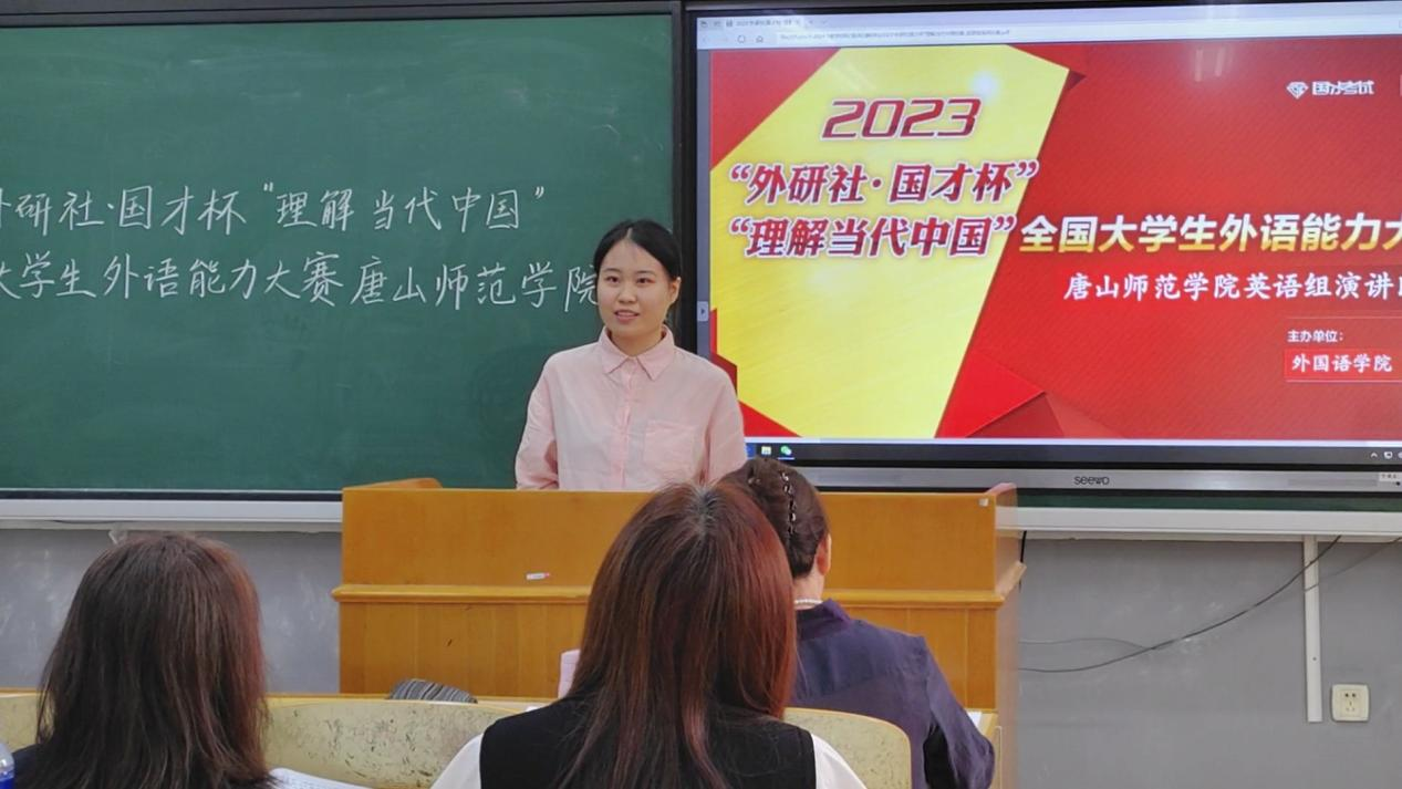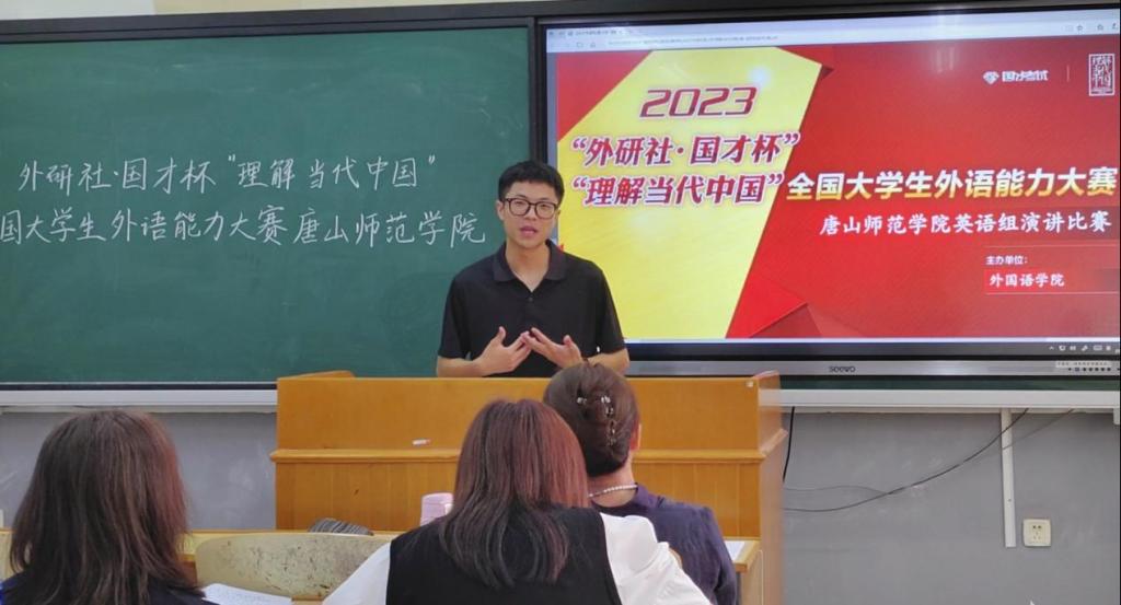 2023年9月5日下午,外研社·国才杯“理解当代中国”全国大学生外语能力大赛唐山师范学院即兴演讲比赛在南院2206室举行。本次比赛由我校国产内射老熟女AAAA∵七名教师担任评委,共13名选手参赛,其中英语专业选手8名,非英语专业选手5名。