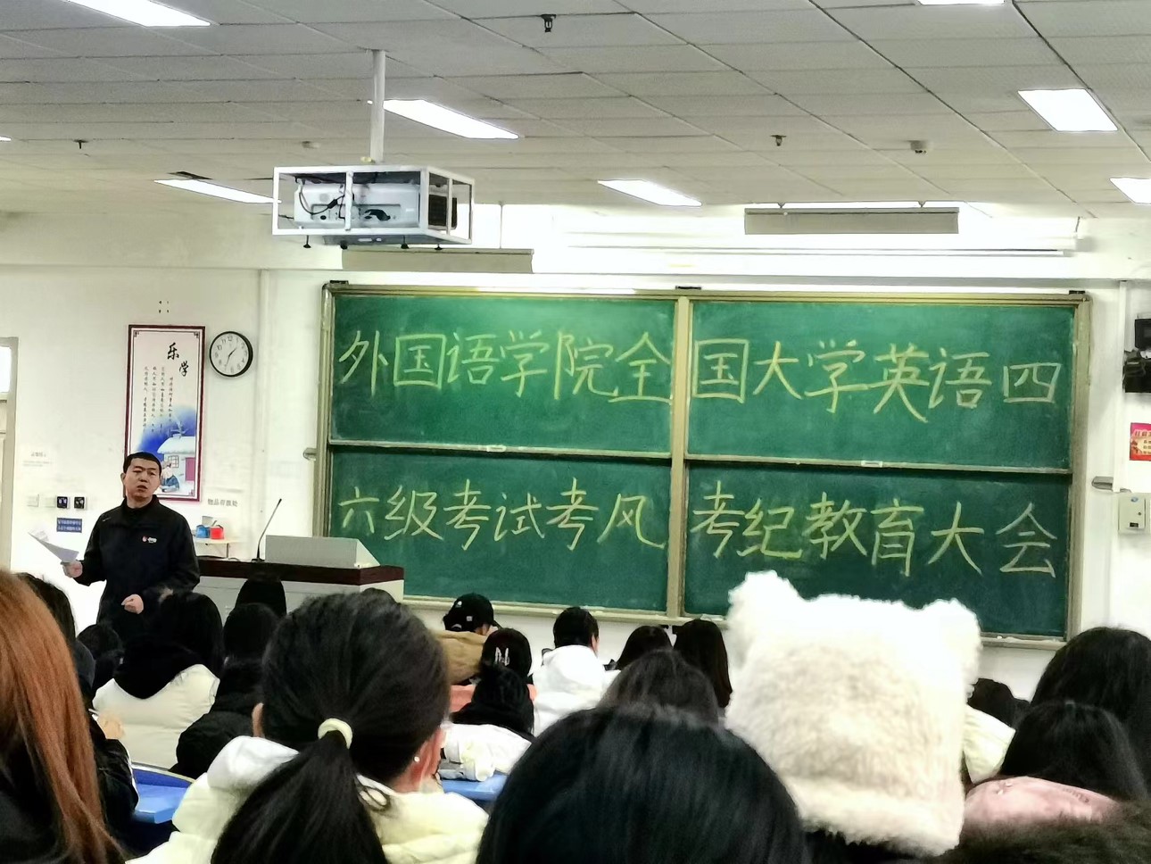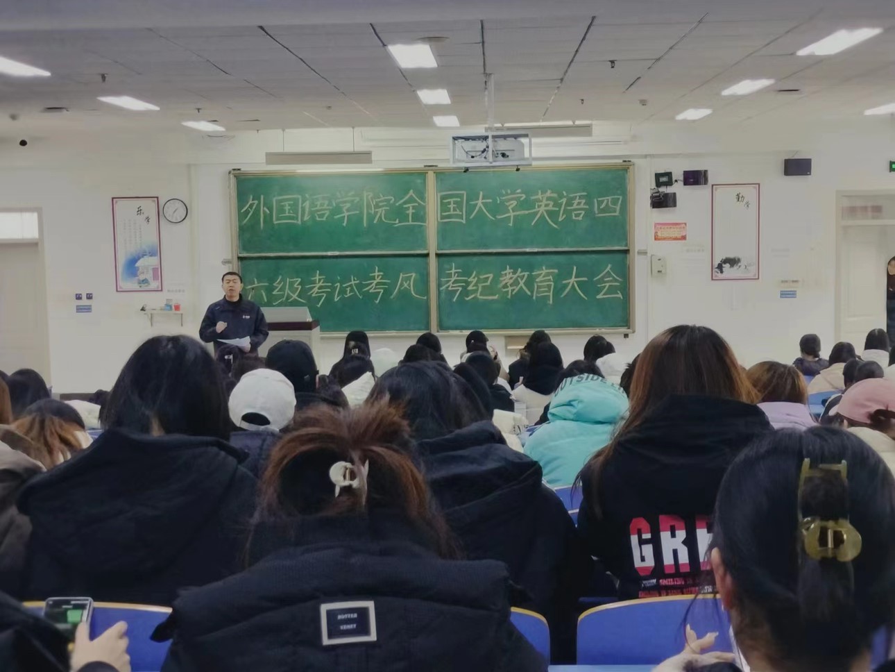 除此之外,为了进一步加强全国大学英语四、六级考试的考风考纪教育,提高考试的公平性和规范性,传达考风考纪对四、六级考试的重要意义,提高学生的考试意识,引导全体考生遵守考试规定,营造良好的考试环境,12月15日,国产内射老熟女AAAA∵于文十阶梯教室召开了考风考纪教育大会。