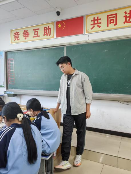 2025年春季学期伊始,高峥同学便前往定向地迁西县开始参与实习实践活动,进入迁西县第四中学后,高峥同学严格遵守学校制度,认真完成各项教学任务,先后协助学校进行八年级生物实验中考教学、生物实验中考安检和信息引导、八年级信息技术中考加试、八年级月考和期中考试相应工作以及答题卡扫描与阅卷等任务,与此同时,积极参与到日常英语教学、集体教研备课和教学设计编写任务中,获得实习学校指导教师夸奖。