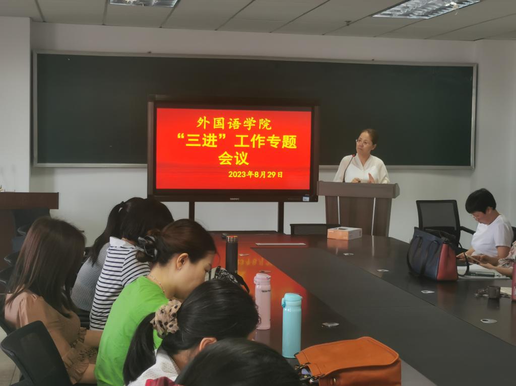 本次“三进”工作启动会的召开,有助于学院凝聚共识,形成合力,推动“三进”工作与主题教育走深走实,并着力打造高质量的专业课程群,推动广大教师进一步强化育人意识,找准育人角度,提升育人能力。外院也将在教师课程思政意识加强、课程思政全方位融入课堂教学、课程思政教学竞赛、思政课题申请等方面进一步采取措施积极推进,力求立足师范型本科院校校情和外语类课程教学实际,探索我校外语类课程思政“三进”的有效途径。