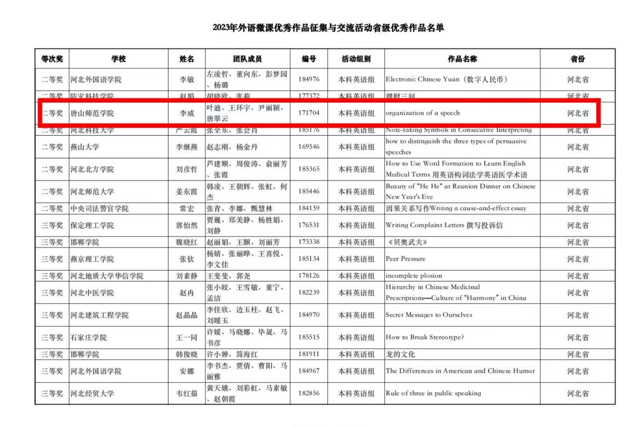 喜报!唐山师范学院国产内射老熟女AAAA∵教师荣获“2023年外语微课优秀作品征集与交流活动”省级优秀作品二等奖