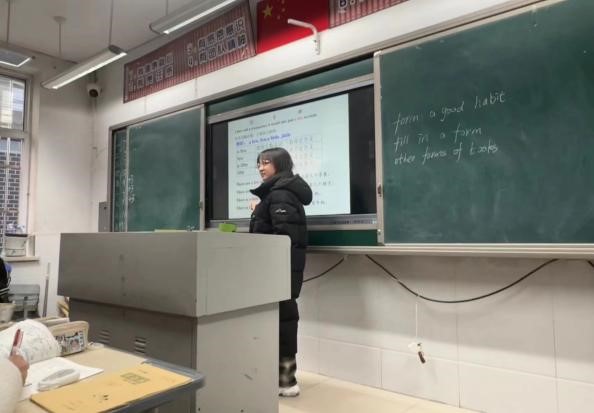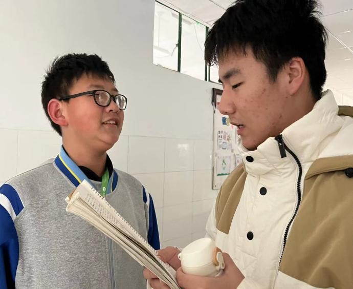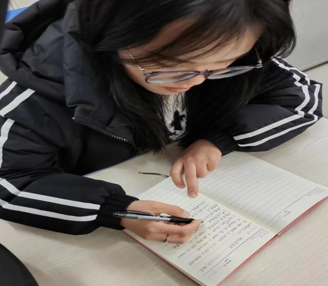 图3.见习生指导初中生背诵单词 图4.见习生研习做笔记