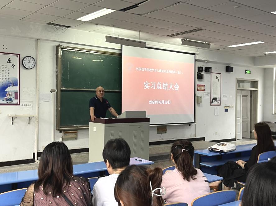 2023年6月19日下午3时,国产内射老熟女AAAA∵的领导老师与返校归来的2020级英语专业实习生们齐聚一堂。阔别四月之后,师生们又团聚在一起,隆重召开了本学年的师范实习总结大会。
