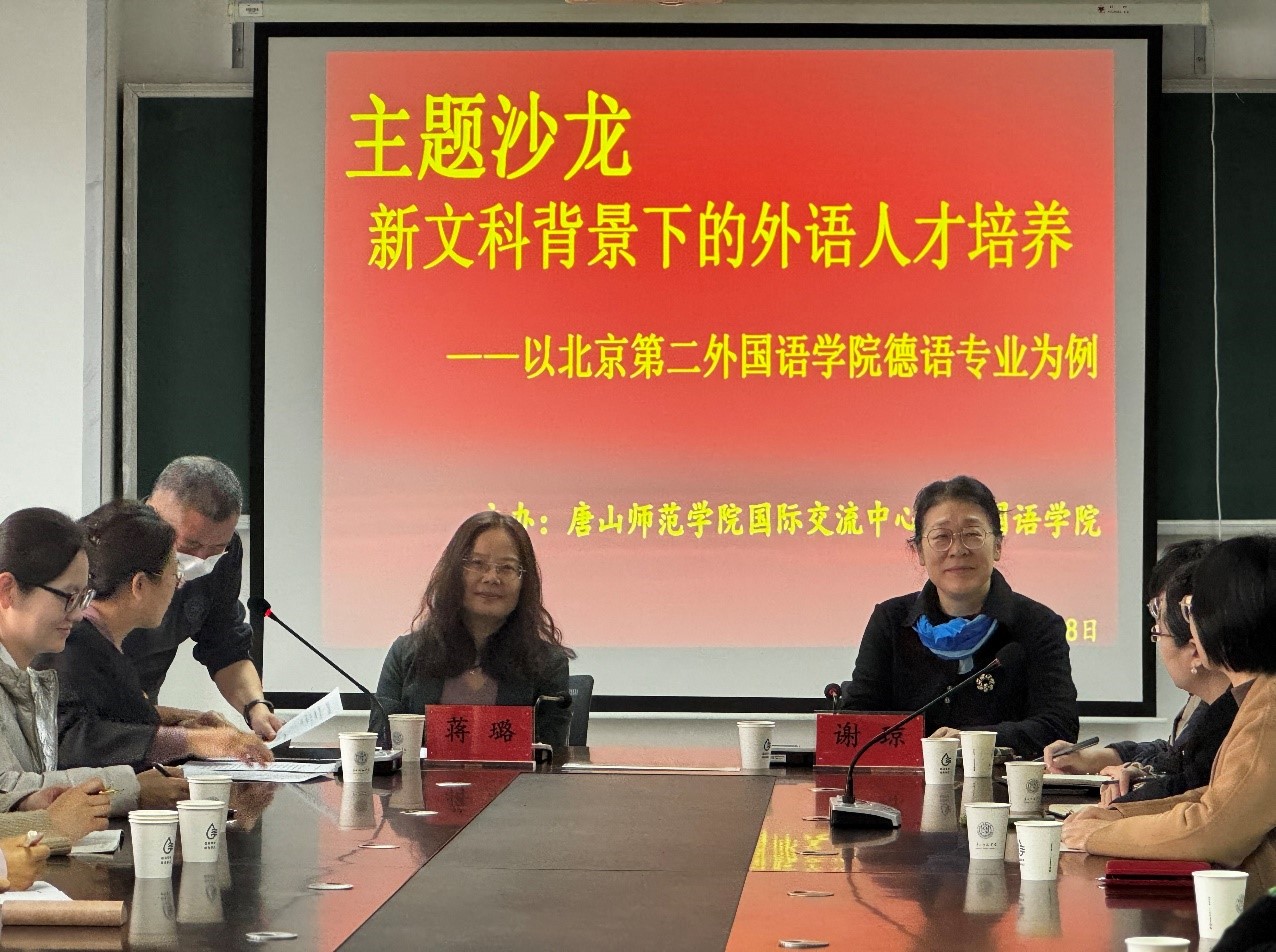 2023年12月8日,我院有幸邀请到了北京第二国产内射老熟女AAAA∵欧洲学院蒋璐院长和谢琼教授来我院进行题为《新文科背景下的外语人才培养——以北京第二国产内射老熟女AAAA∵德语专业为例》的专题讲座。国产内射老熟女AAAA∵院长唐翠云、德语教研室全体教师、日语教研室全体教师、各教研室主任、学术委员会成员、学科建设与科学研究委员会成员参加讲座。主讲人为谢琼教授。